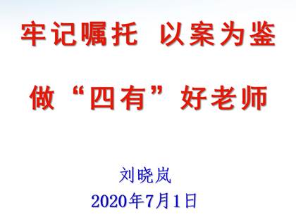 为贯彻落实“三会一课”制度,7月1日下午15:00学院全体党员汇聚在钉钉线上会议中开展党课学习活动。会议由党总支书记侯英主持,首先传达学习文件《关于加强中央和国家机关所属事业单位党的建设的意见》,随后的党课以“发挥党员先锋模范作用,让党旗在防控疫情斗争第一线高高飘扬”为主题,教育引导大家在疫情防控中践行入党誓词、检验初心使命,充分发挥党支部战斗堡垒作用和党员先锋模范作用。接着党总支副书记刘晓岚的党课以“牢记嘱托,以案为例,做四有好老师”为主题,以多起案例为切入点,教育大家要“敬廉崇洁、节俭自律”,做到常思贪欲之害,常弃非分之想,常怀律己之心,常修从政之德。通过这次党课,全体党员受到了教育和鼓舞,大家纷纷表示要从思想上和行动上保持与党中央高度一致,立足本职岗位,廉洁自律,要以更加奋发有力的工作状态为推动学院发展贡献力量。