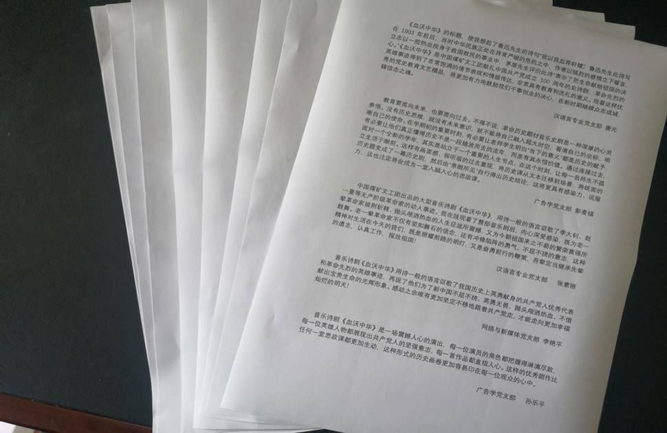 演出直播结束后,全体党员提交观后感,发表了自己的感悟。