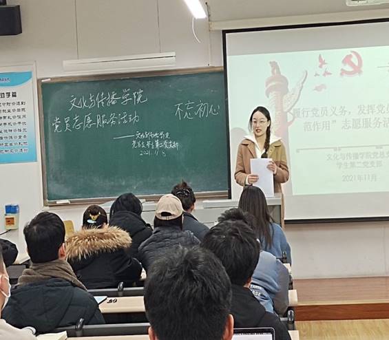 汉语言教工党支部开展了题为“我为毕业生就业志愿服务办实事”的主题党日活动。汉语言教工党支部全体8名党员,以多种形式为汉语言文学2018级毕业生提供就业帮助,为他们解决考研、考公务员、找工作等过程中面临的各种难题。网络与新媒体教工党支部专任教师开展“课前五分钟微党课”活动,利用碎片时间,为学生拓展党史学习教育内容。学生第一、第二党支部42名党员联合组成宣讲团,分成7组、每组6人,利用晚自习时间为21级各班同学做入党启蒙教育宣讲。号召共青团员积极靠近党组织,围绕对党的认知、端正入党动机、深入了解入党流程和如何发挥党员先锋模范作用这四项内容以主题班会的形式开展了入党启蒙教育。
