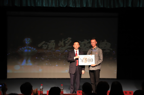 学院党委副书记、纪委书记陈光老师为最佳剪辑奖获得者王瑾颁奖