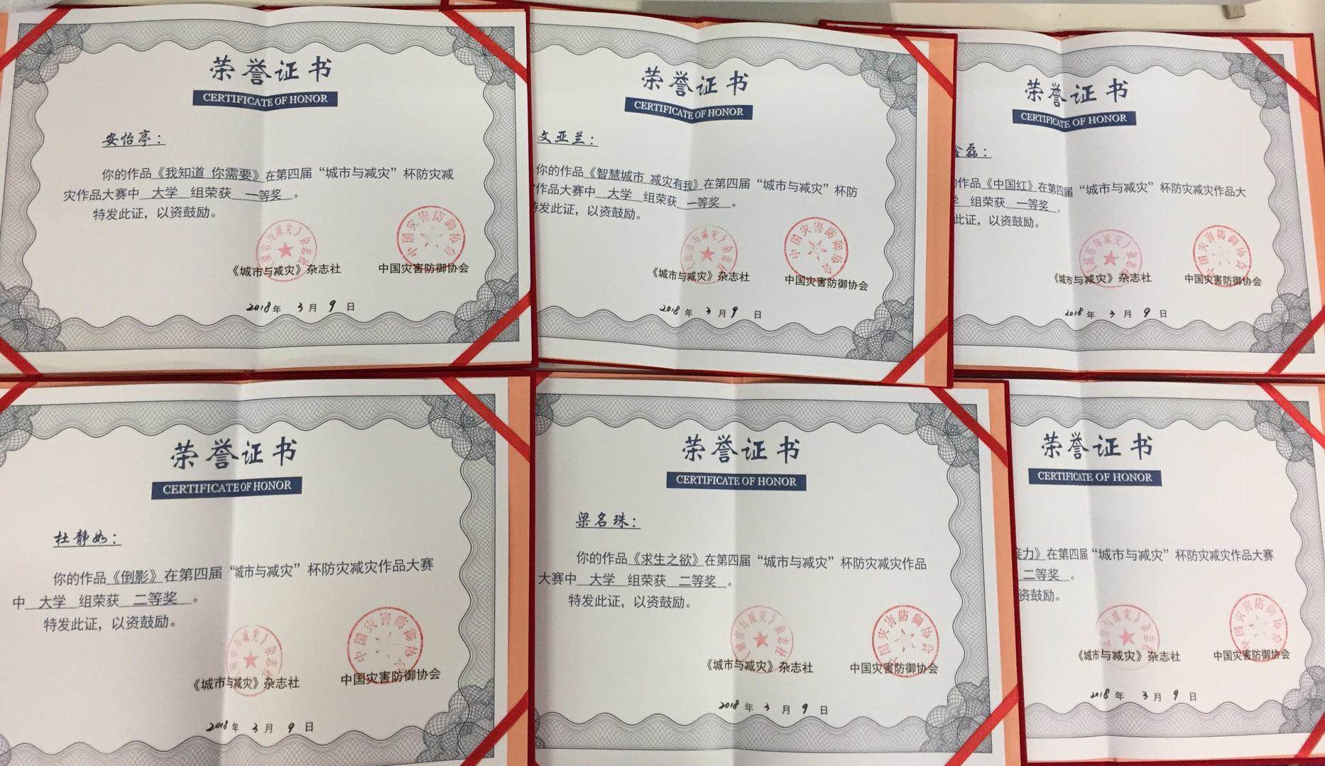 2018年,由北京减灾协会、北京市地震局宣教中心承办的第四届“城市与减灾”杯防灾减灾作品大赛在京举办,大赛以“智慧城市,减灾有我”为主题,面向社会公众、中小学生和大专院校广泛征集涉及防灾减灾各类作品。大赛自启动以来,得到社会各界的广泛关注和参与,大赛分为幼儿组、小学组、中学组、大学组、成人组,共收到来自全国18个省、自治区、直辖市的参赛作品6200余件,作品形式有书法、绘画、摄影、公告设计、微视频等。