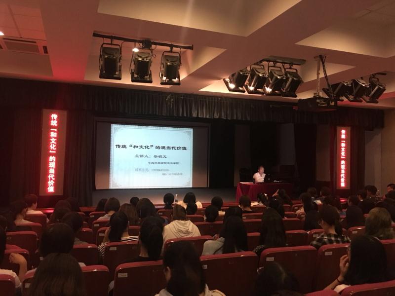 2018年9月20日下午,华北科技学院新葡萄官网AMG中文系主任蔡召义副教授来到新葡萄官网AMG人文小剧场,为广大师生开设了《中国传统“和”文化的现当代价值》的学术讲座。本次讲座由汉语言文学教研室主任张静主持,汉语言文学专业的同学参加。蔡副教授主要讲解了传统“和”文化源远流长的文化内涵,以及传统“和”文化的现当代价值。讲座弘扬了优秀传统文化,有利于促进学生正确认识国情,激发爱国爱家的高尚情怀。