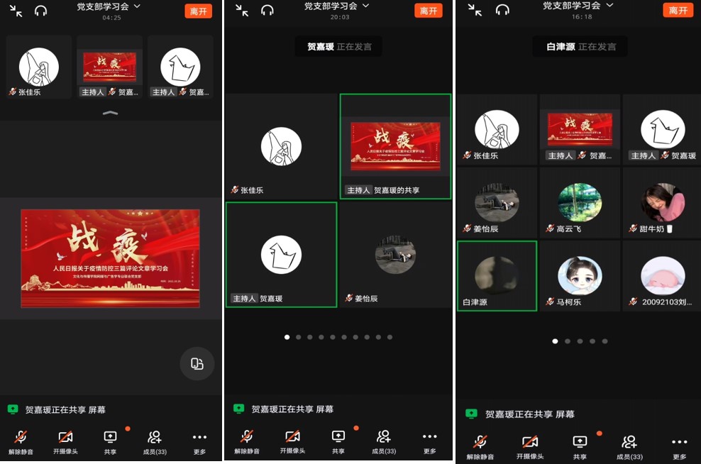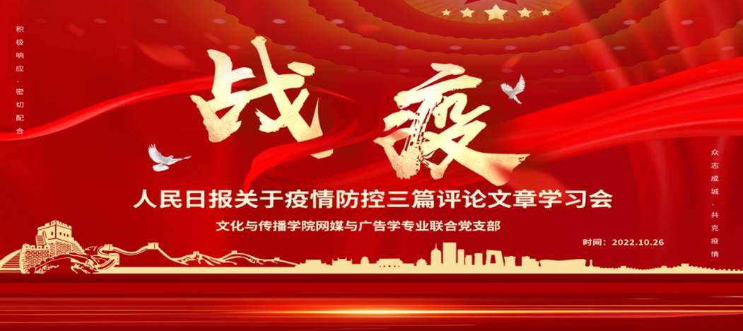 2022年10月26日中午,新葡萄官网AMG与广告网媒专业学生联合党支部组织开展学习人民日报关于疫情防控的三篇评论文章为主题的学习活动。会议由贺嘉瑗主持,广告与网媒专业学生联合党支部全体党员参会。