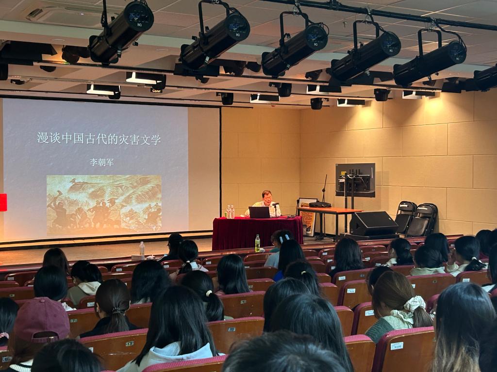 李朝军教授从2008年汶川地震引入,通过抗震救灾中涌现的“地震诗潮”,引发同学们对于灾害文学的共鸣,让同学们认识到灾害文学的成因、影响因素与思想深度。本次讲座,通过对中国古代灾害文学的讲解,帮助大家深入了解古代文学中灾害主题的历史与文化背景,带领同学们跨越时空,窥见古代社会的经济结构、价值观念,以及人们在灾害困境中的应对方式,有利于同学们了解防灾行业文化,开拓专业阅读视野。
