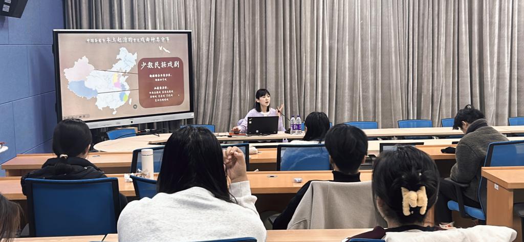 在讲座中,郑少华博士介绍了中国各地盛行的三百余种地方剧的分布情况和从业人员,讲解了最知名的几大剧种如昆剧、京剧、越剧、黄梅戏、评剧的主要代表性人物和发展情况,为同学们剖析了京剧四大名旦各自的流派特点,最后结合经典演出分析了戏曲艺术虚拟化、程式化、综合性的三大典型特点。本次讲座增强了同学们的戏剧文学知识,开拓了同学们的文化视野,让同学们深刻认识到传统艺术承载的丰富历史信息和文化价值,可以更好地传承中华历史文化,增强文化自信。
