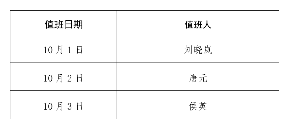 新葡萄官网AMG2021年国庆节期间值班人员安排表